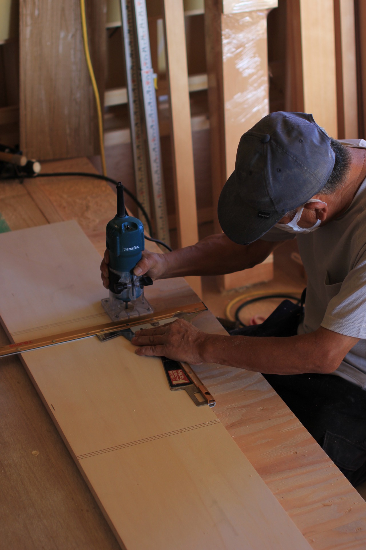 くらしこのハナレでは、造作工事も追い込み中で、所狭しと木材が置かれ、大工のみんなの熱気でムンムンです(大汗)