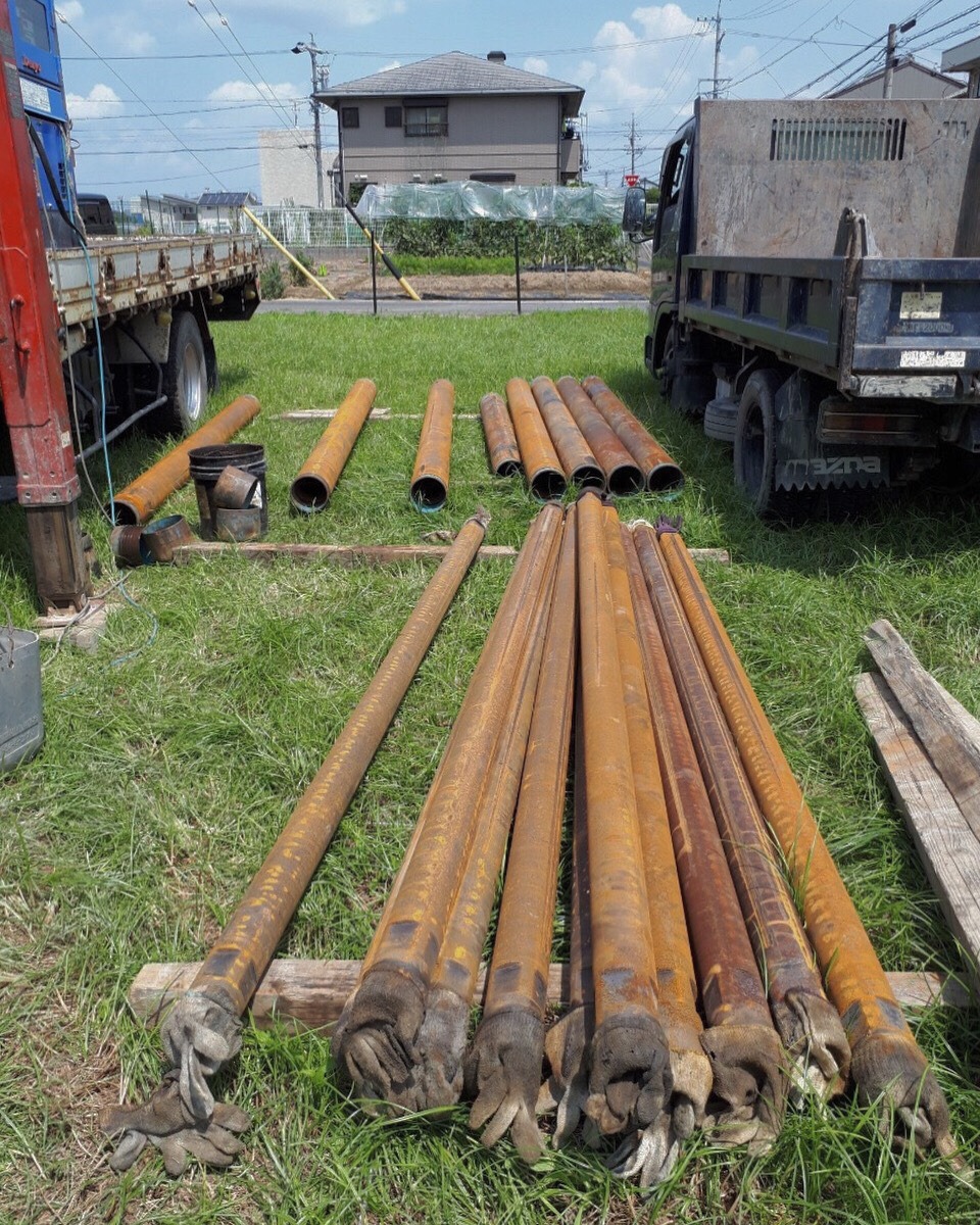 このコンプレッサーで圧力をかけなが30m以上掘削していきます。