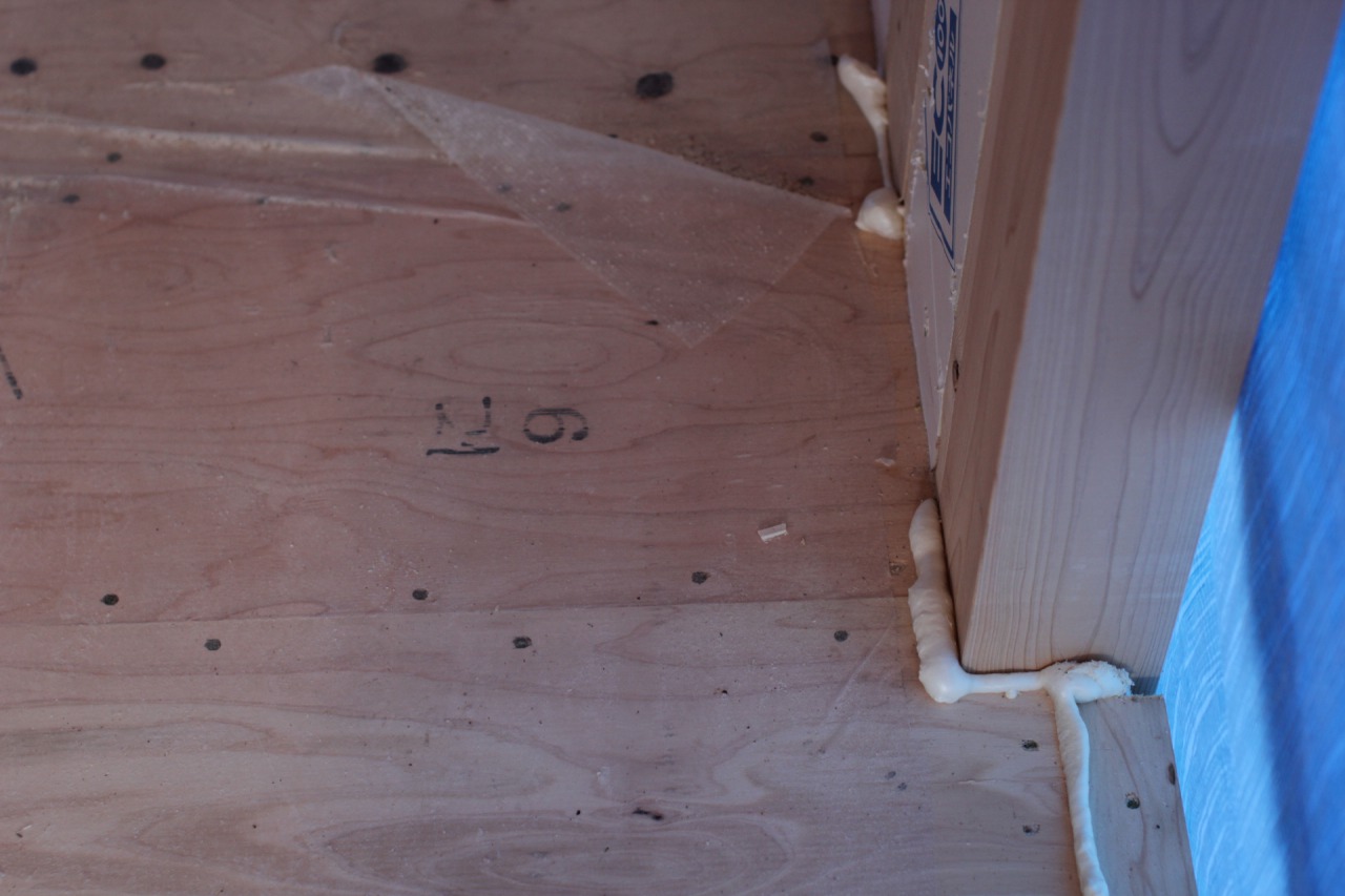 柱と床との取り合いはウレタン材で隙間埋めます。