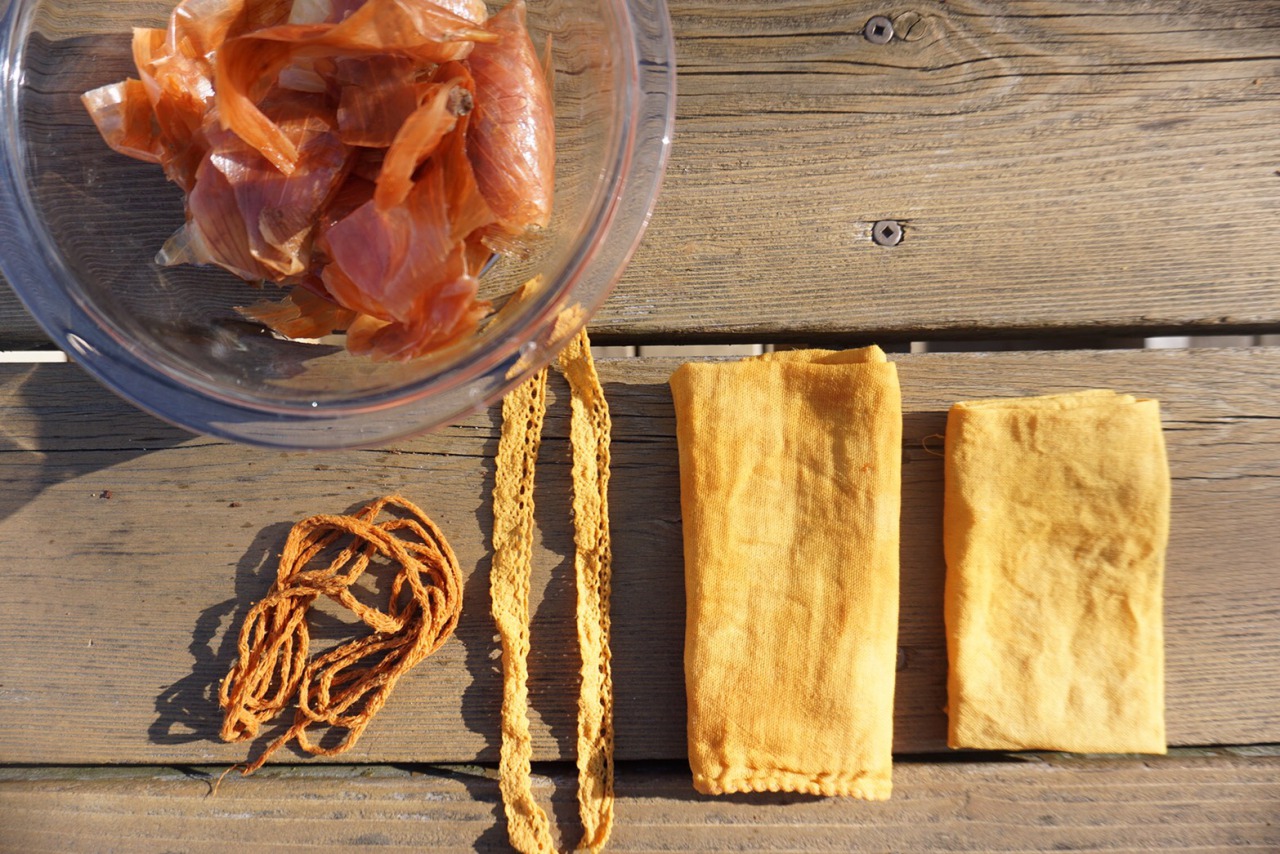 もう一つの染料は、お昼ご飯に食べたカレーで使った玉ねぎの皮を使用。
