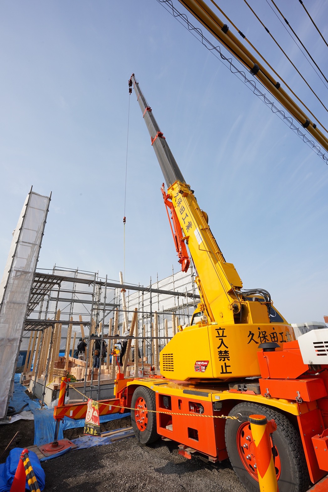 上棟中の現場は、檜の香りに包まれて気持ちがよいです。