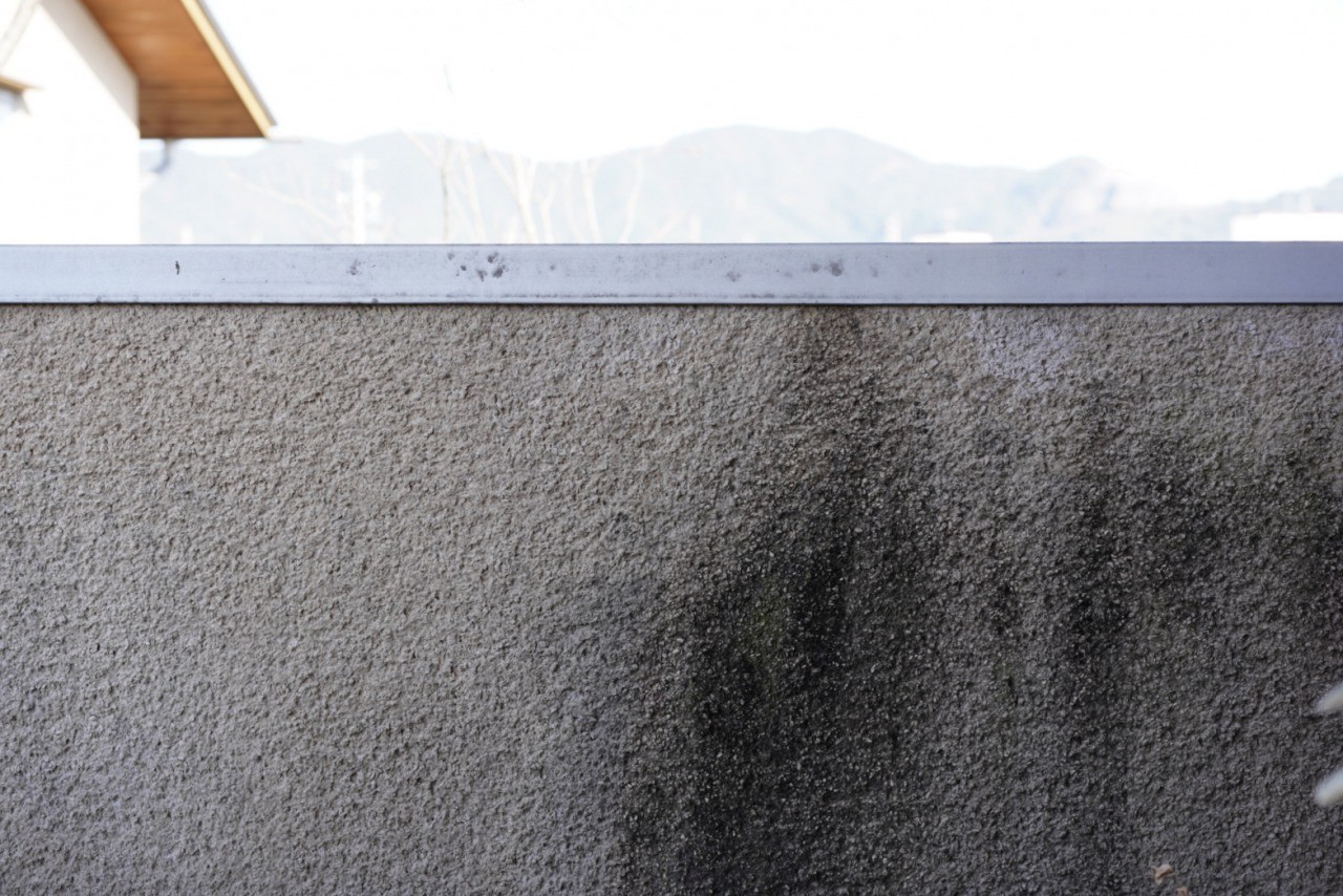 パラペットを立ち上げた軒の出のない場所に黒ずみが生じていました。