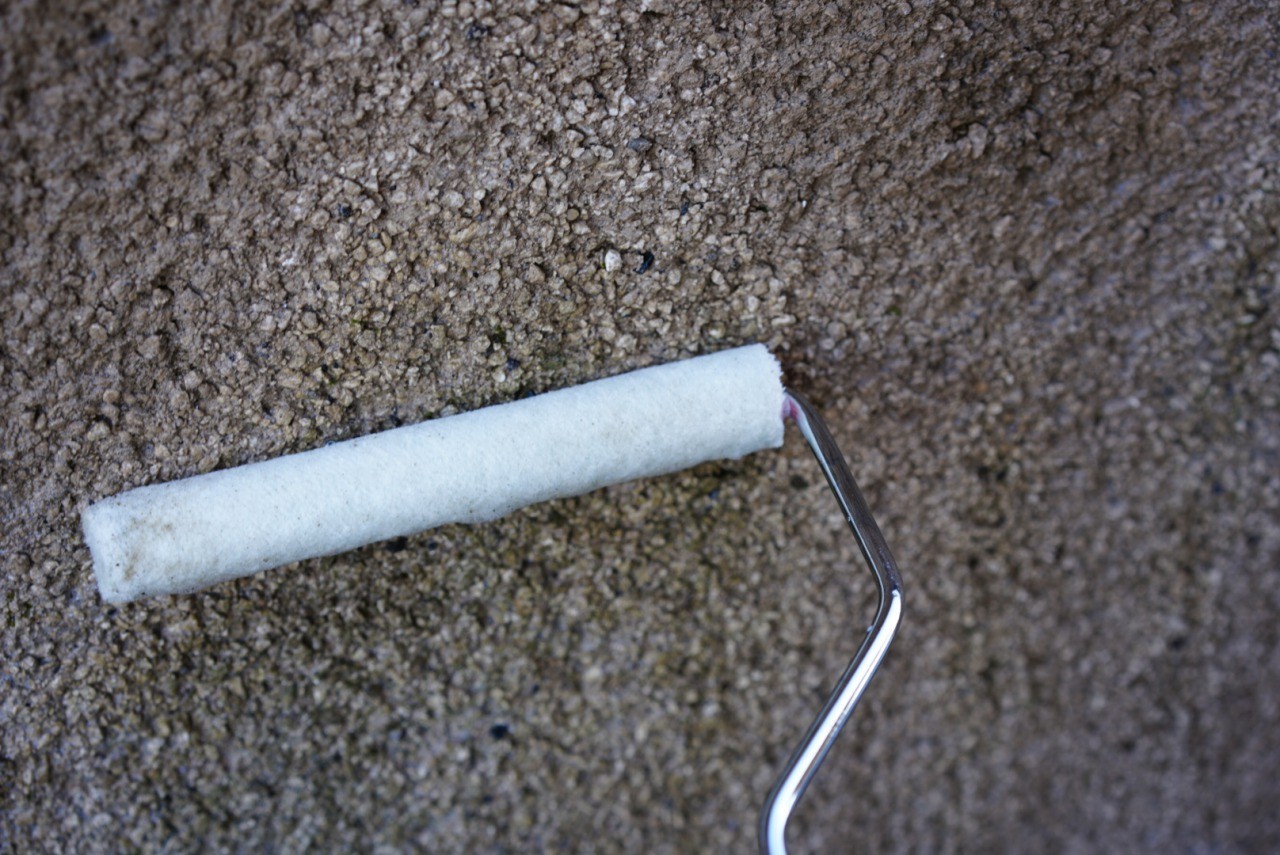 ①洗剤100ccに水400ccを入れた5倍液の希釈水を作り、ローラー型のスポンジで汚れている部分に洗剤が染み込むようたっぷりと塗布します。