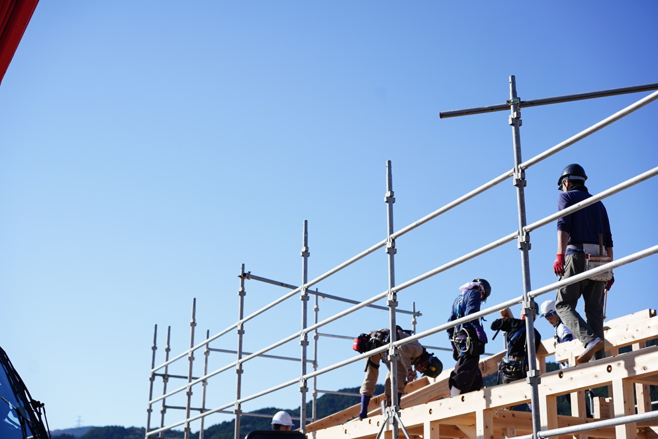 棟梁の林大工を筆頭に、岡田大工、上野大工、渋田大工と他の現場からも応援に駆けつけてくれて