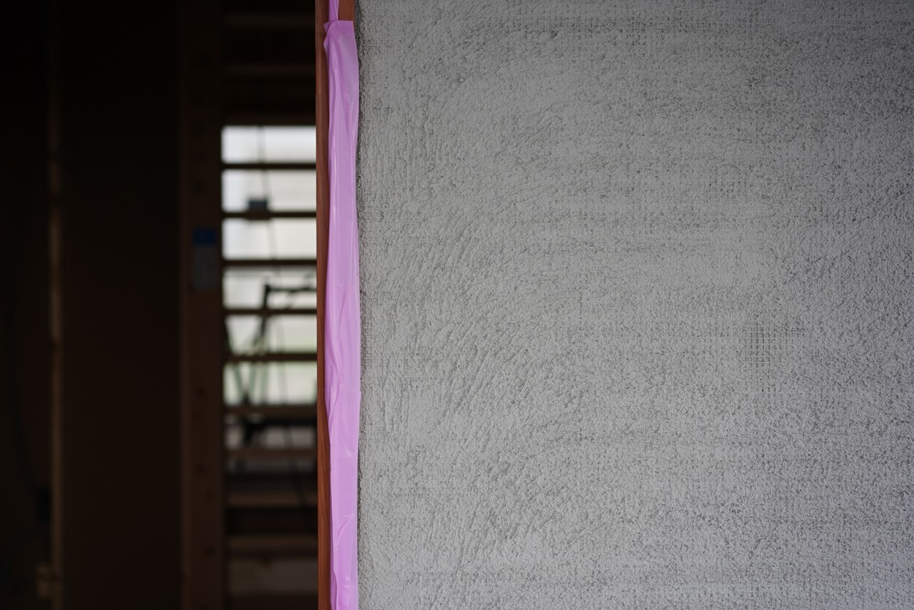 モルタルとファイバーメッシュの塗り込みが完了しました。