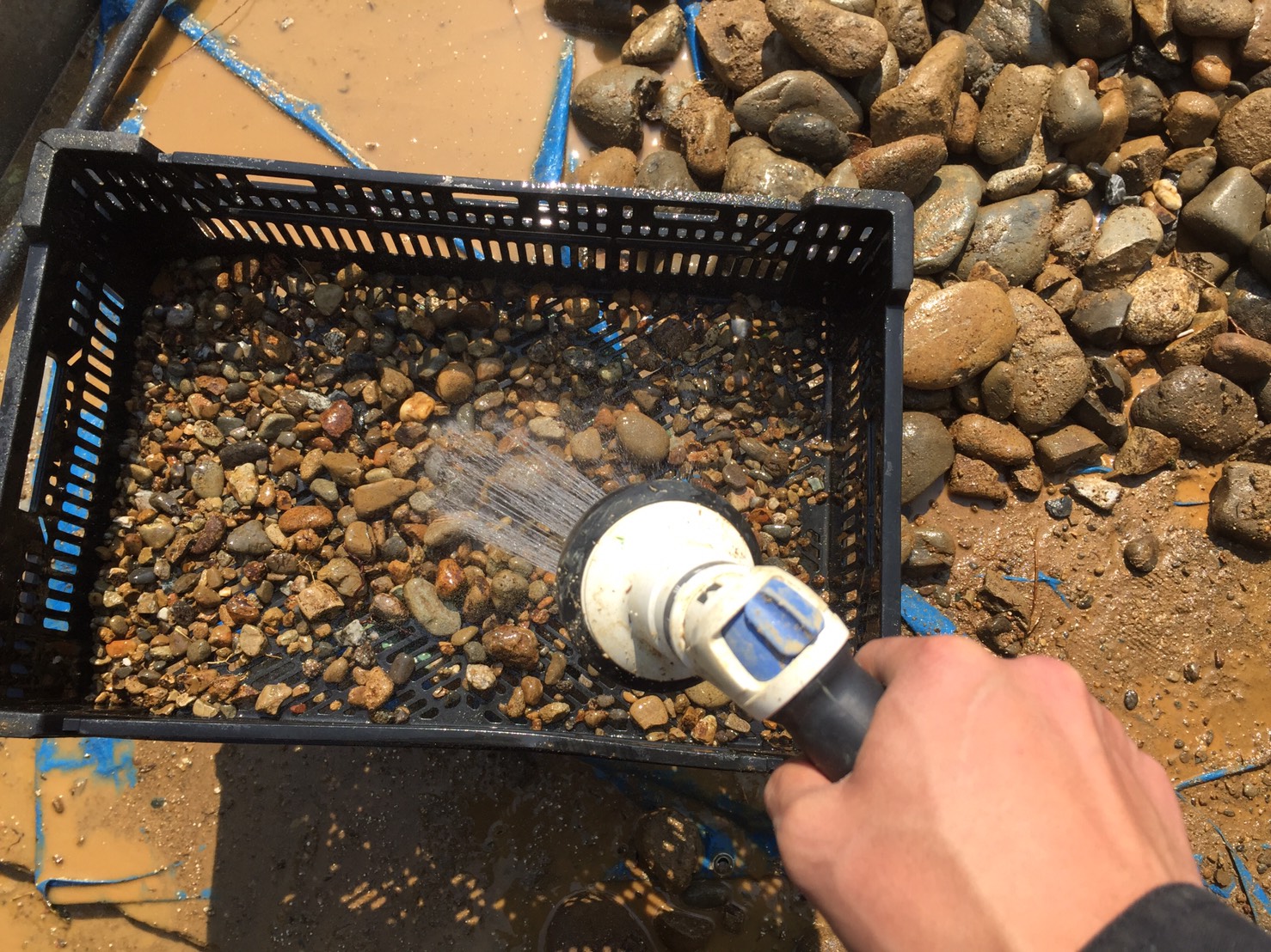 水で洗ってできた砂利を使う、これぞ「地産地消」