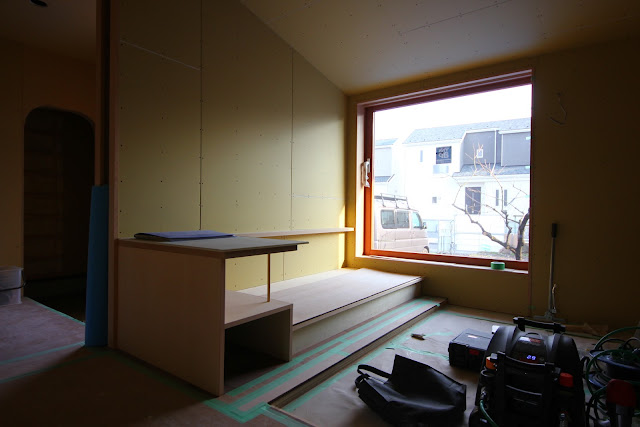 建築場所がすぐ近くの大野町の横山様邸は、造作工事追い込み中。