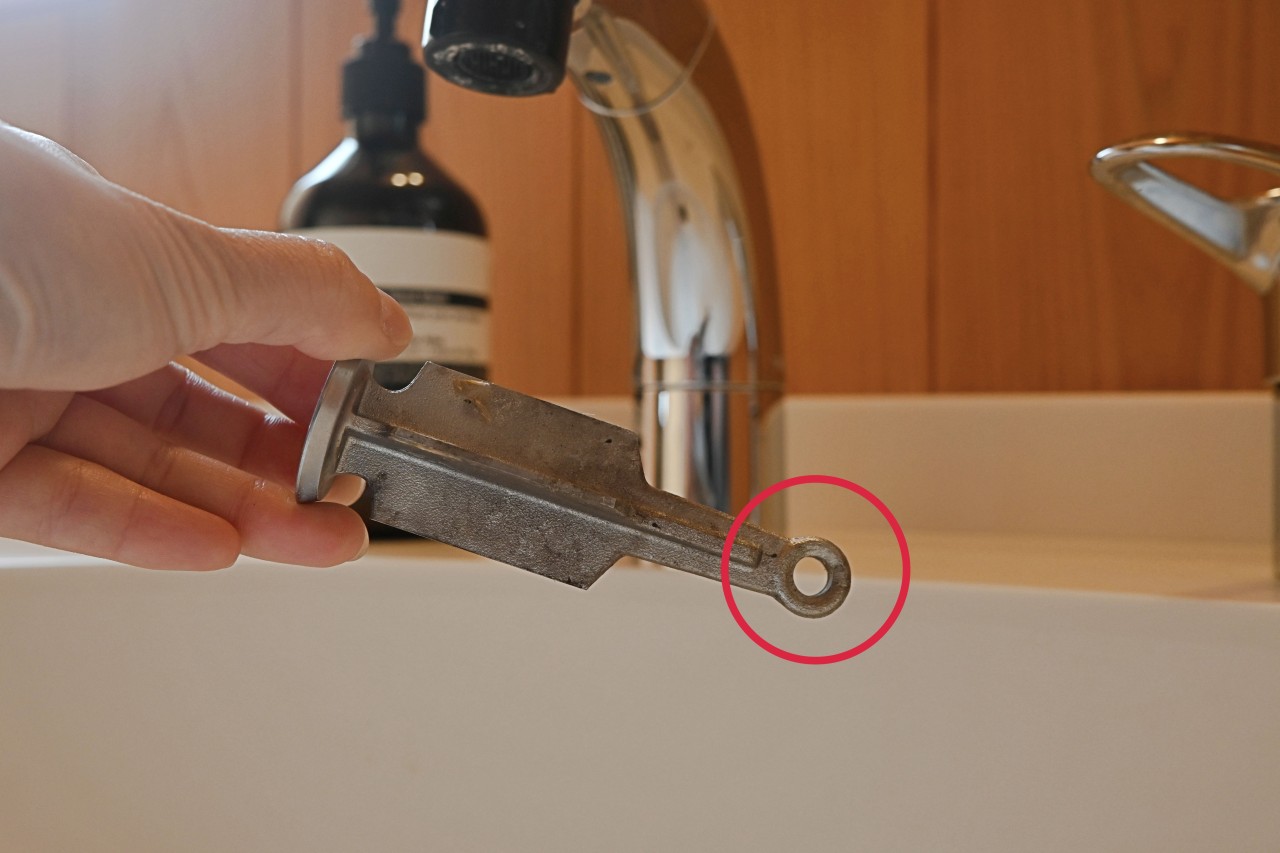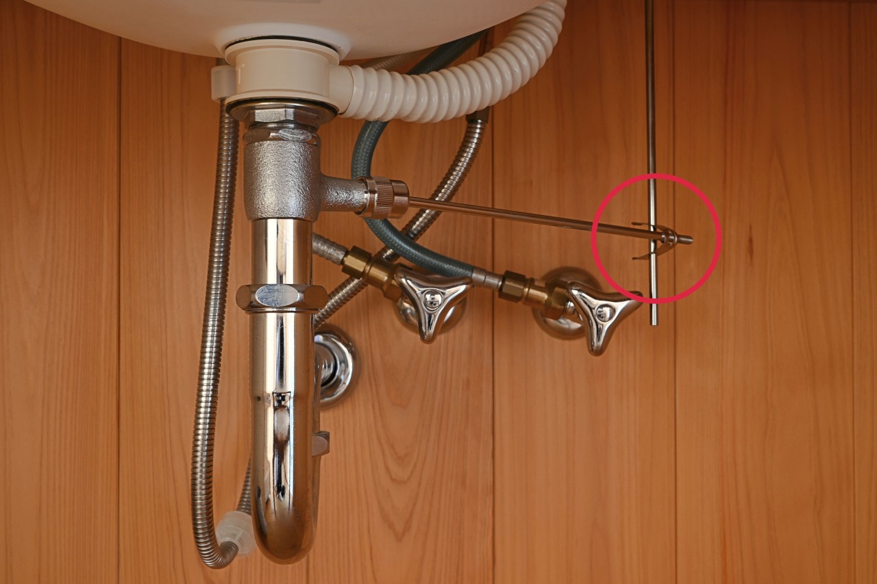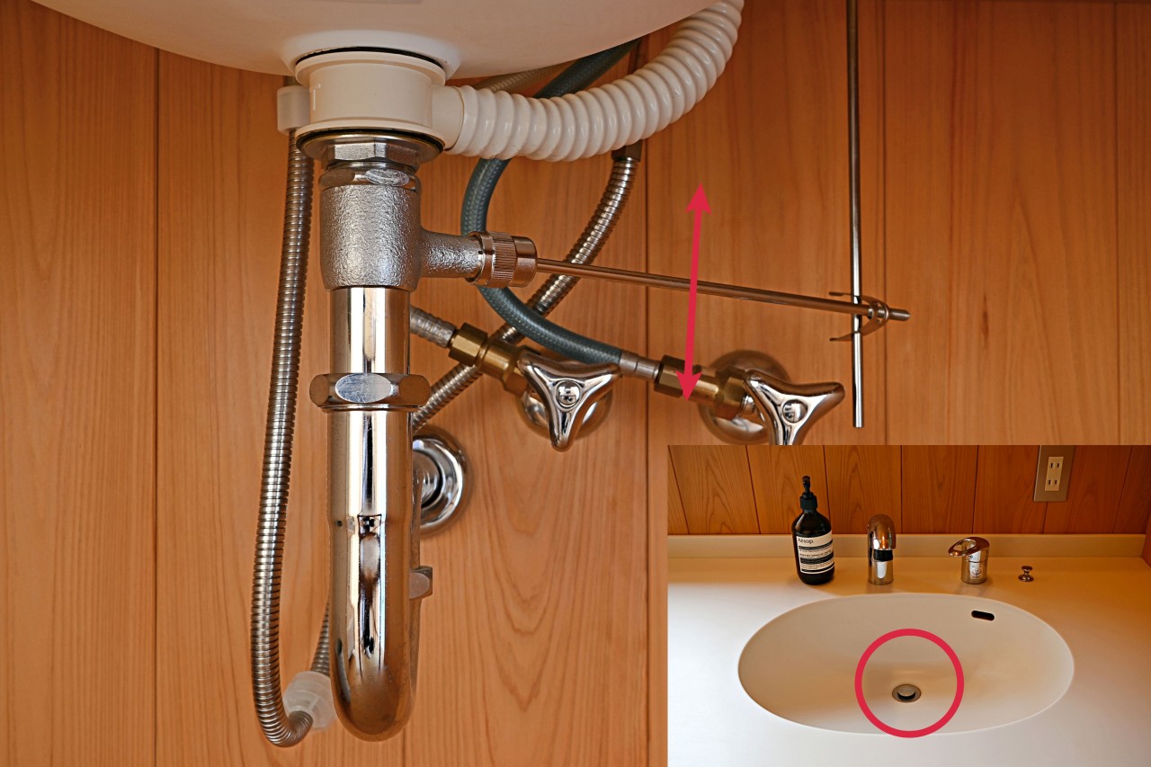 1.洗面台の下にある、目皿のレバーと連動している部分を外します。