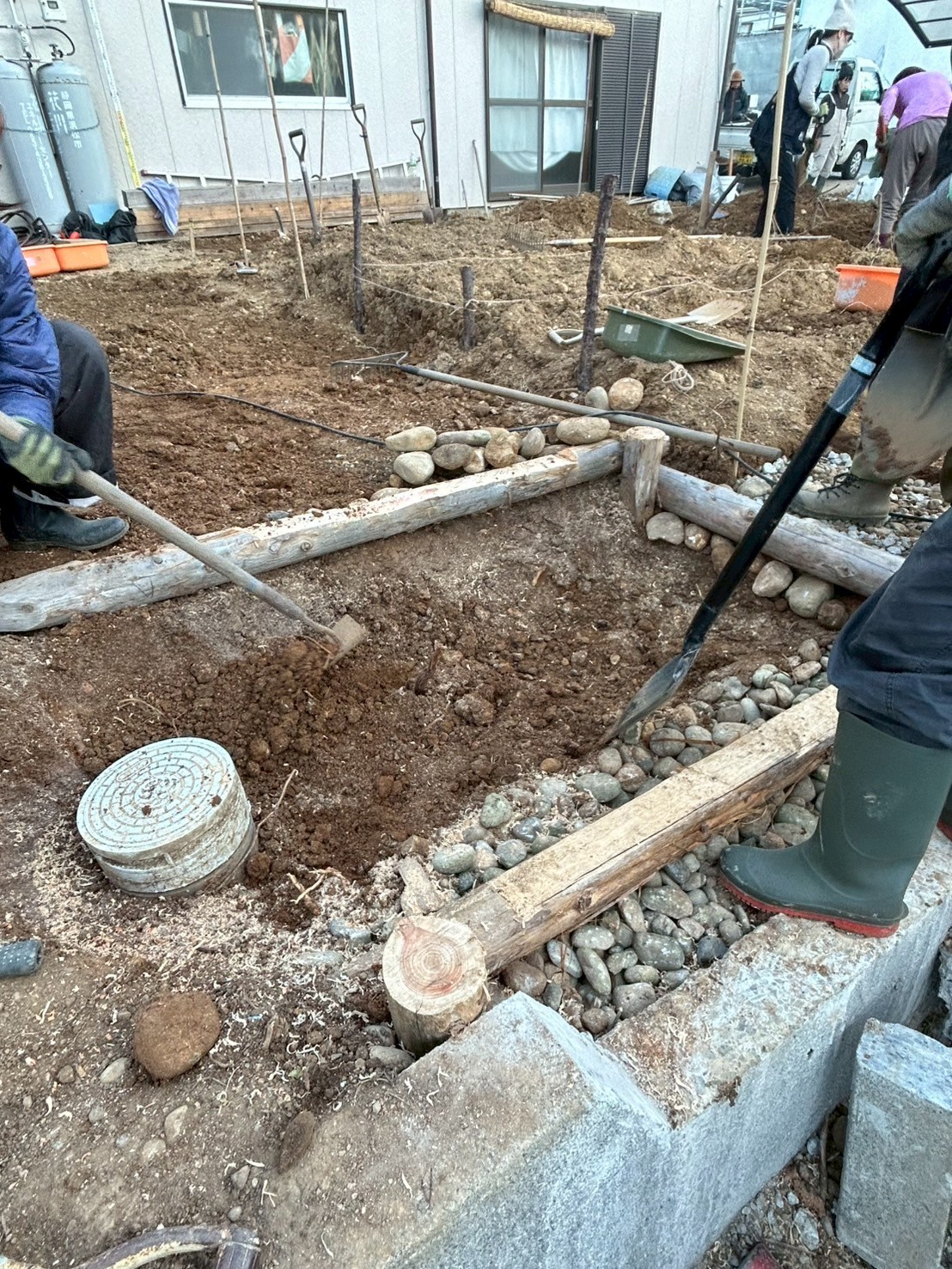 想像以上に細かな造成を手作業で行う3日間でしたが、“10年で1000の食べられる森をつくる”という願いのもとに、そのひとつが生まれるこの現場では、施主のあかねちゃん、講師の方々の温かい教え、そして参加者の方々の熱気が相まって、年末ということを忘れてしまうほど造成作業に没頭していました。