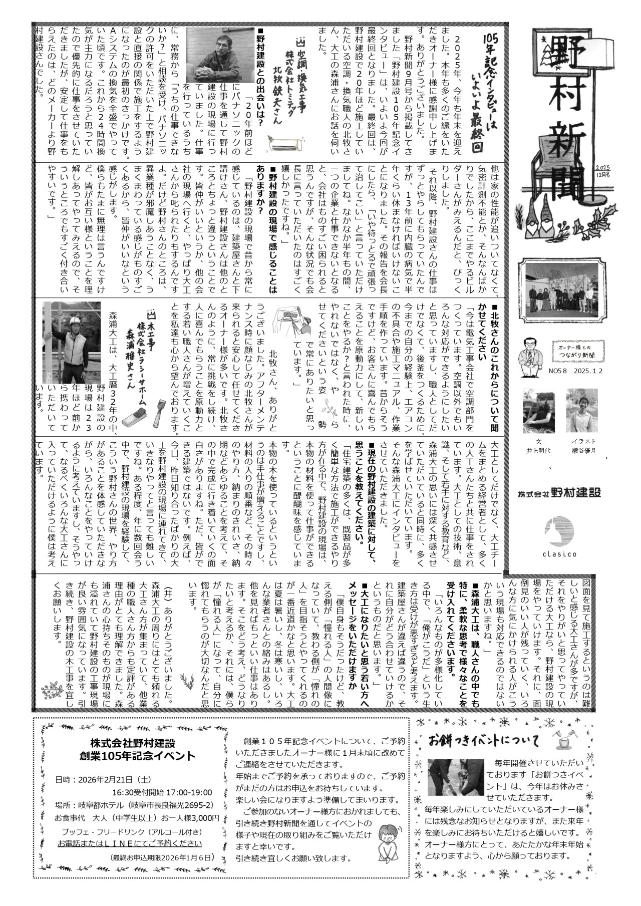 今年も年の瀬を迎えましたが、野村新聞58号が年内にオーナー様のお手元へ届くように準備が整いました!