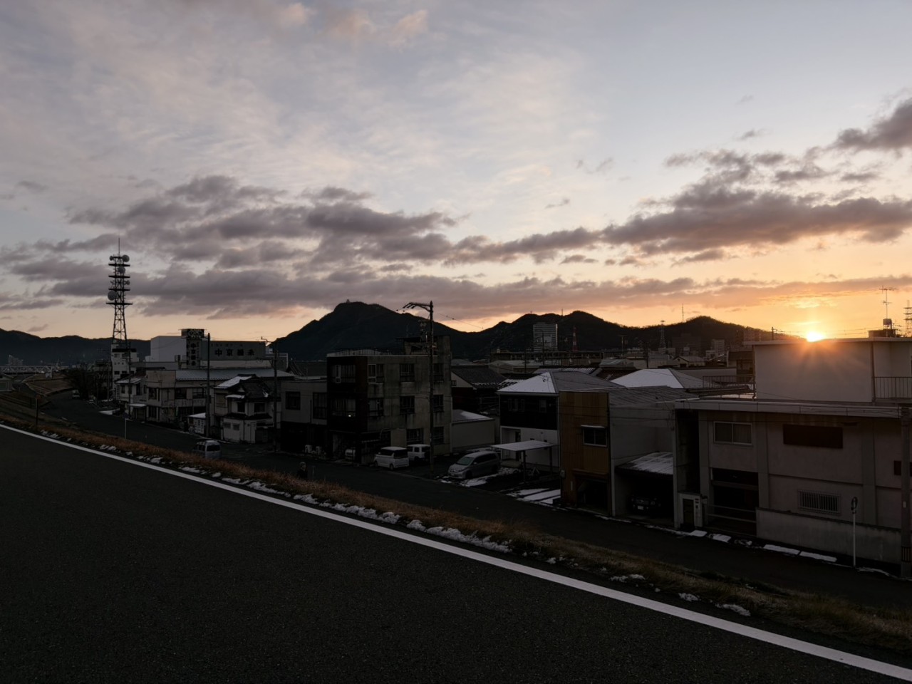 − 2℃の日の出前に、白い息を吐きながら