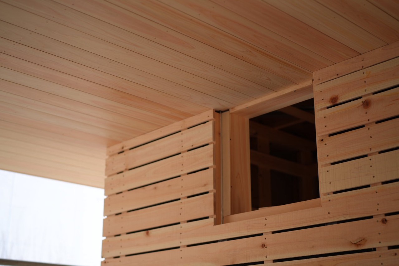仕上げは、壁、天井と檜板で仕上げていきます。