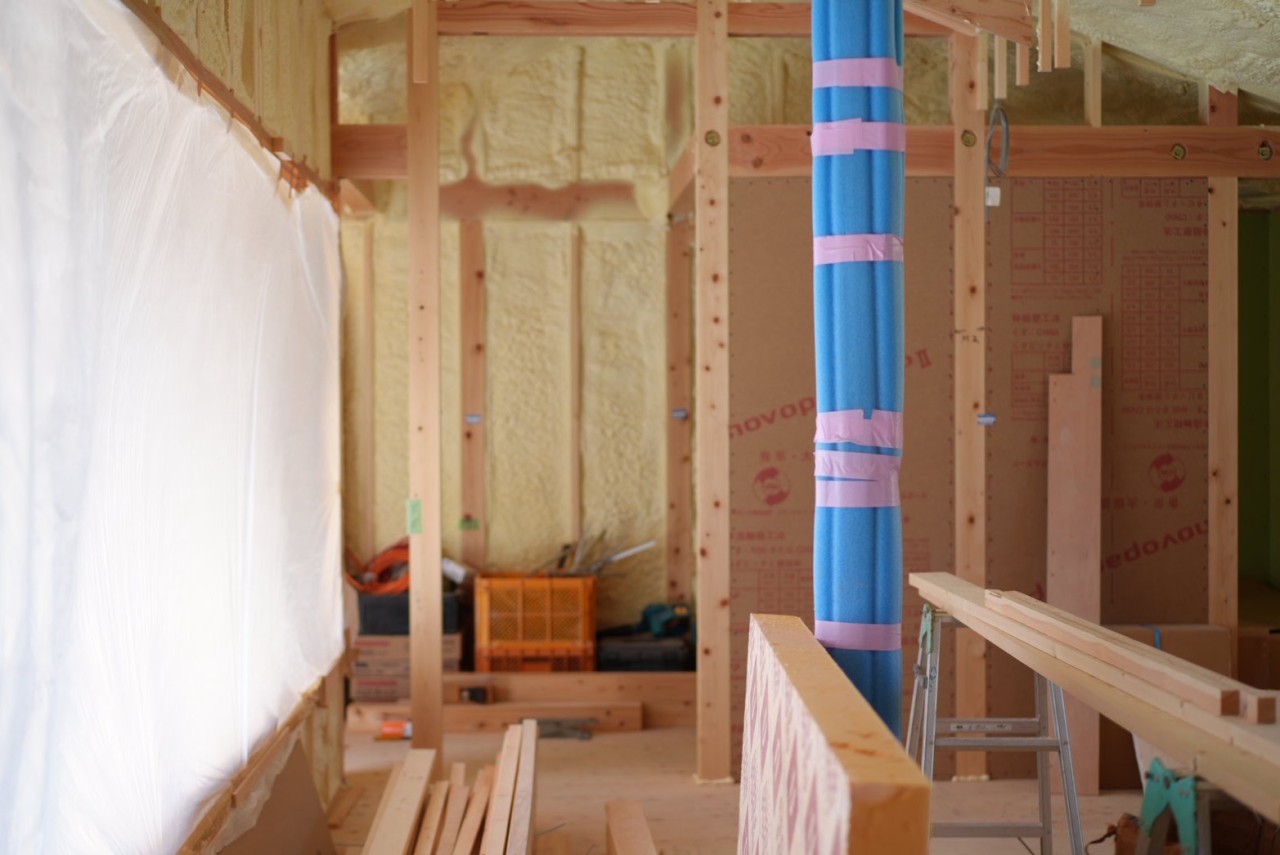外部は左官チームがこれからそとん壁工事を進めてくれます。