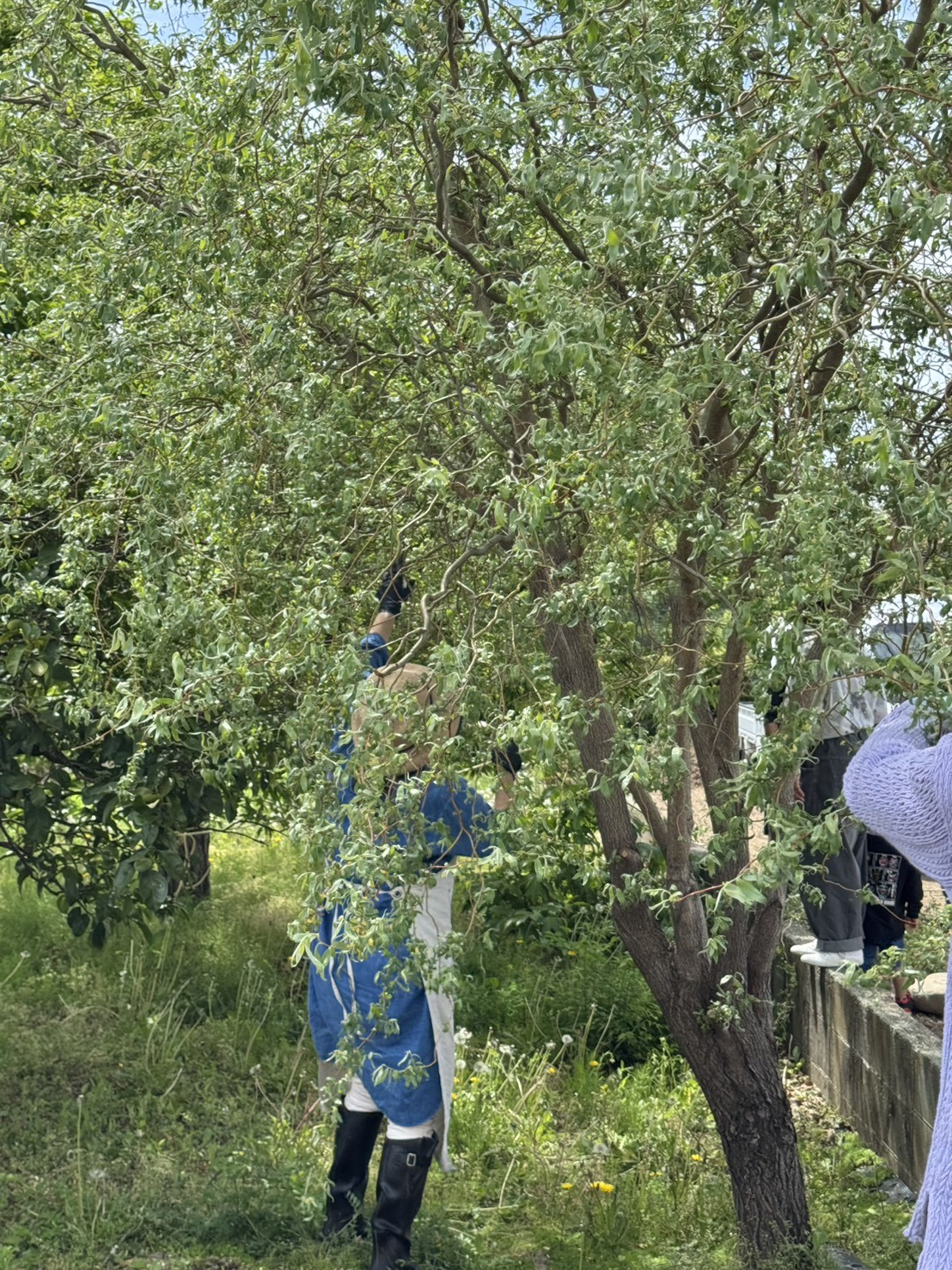 開催のオーナーさんの敷地にはレモン、ブルーベリー、さくらんぼ、甘夏などのたくさんの果実と、モクレンやツツジ、クリの木、雲龍柳などの樹木、そして野菜畑があります。
