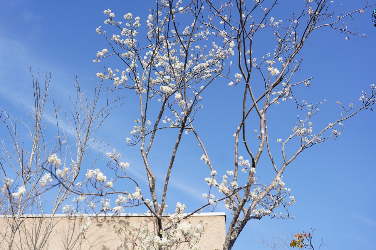 高さ7mを超えるジュンベリーは、白い花をいっぱいに咲かせたので、やがて美味しい実をつけます。