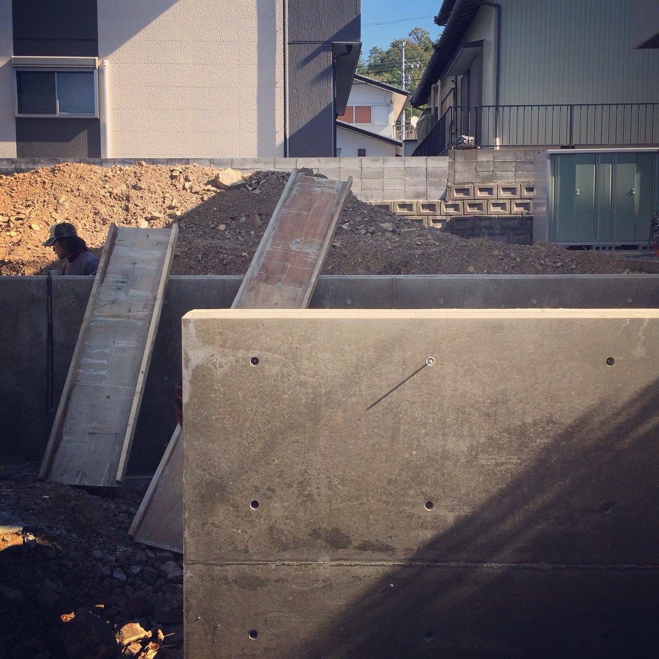 日野の家は、ようやくコンクリート擁壁の型枠が外せました!