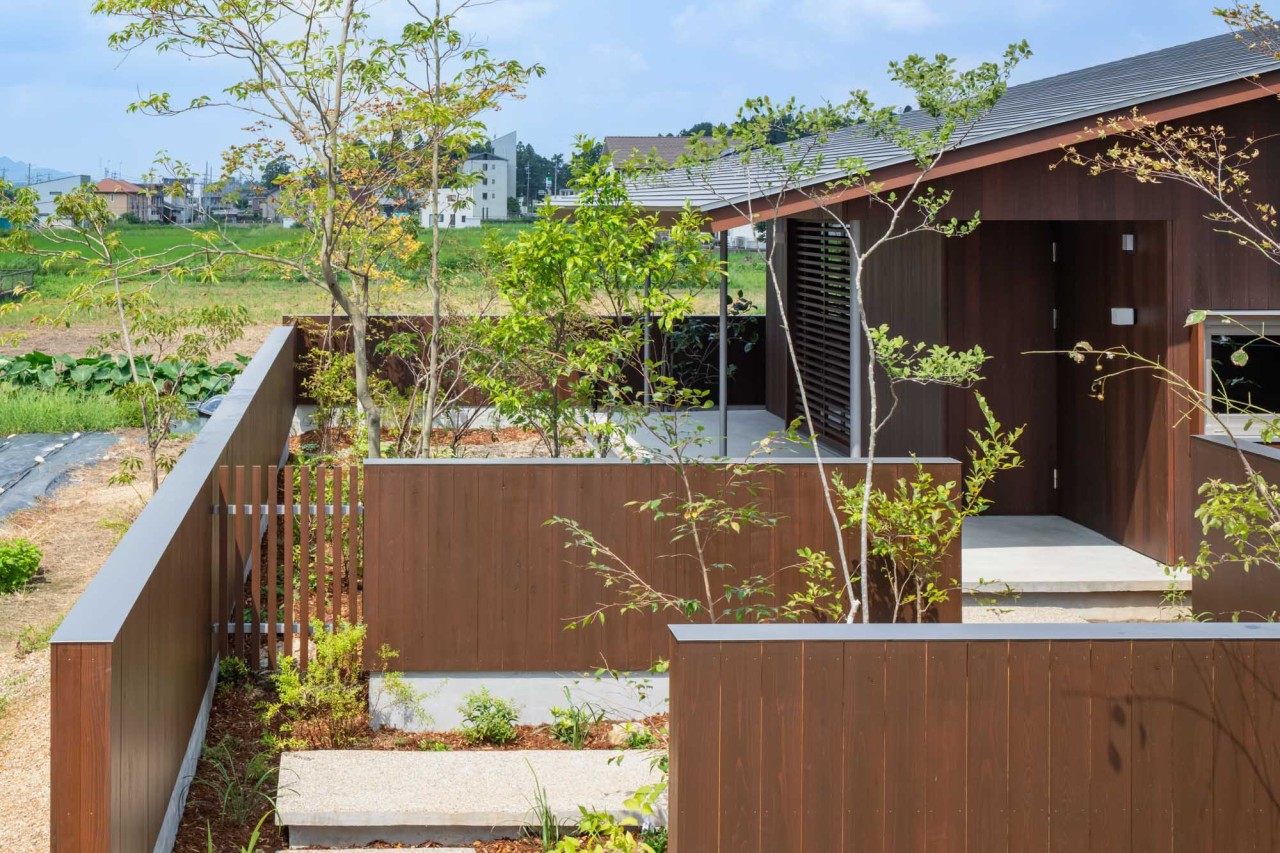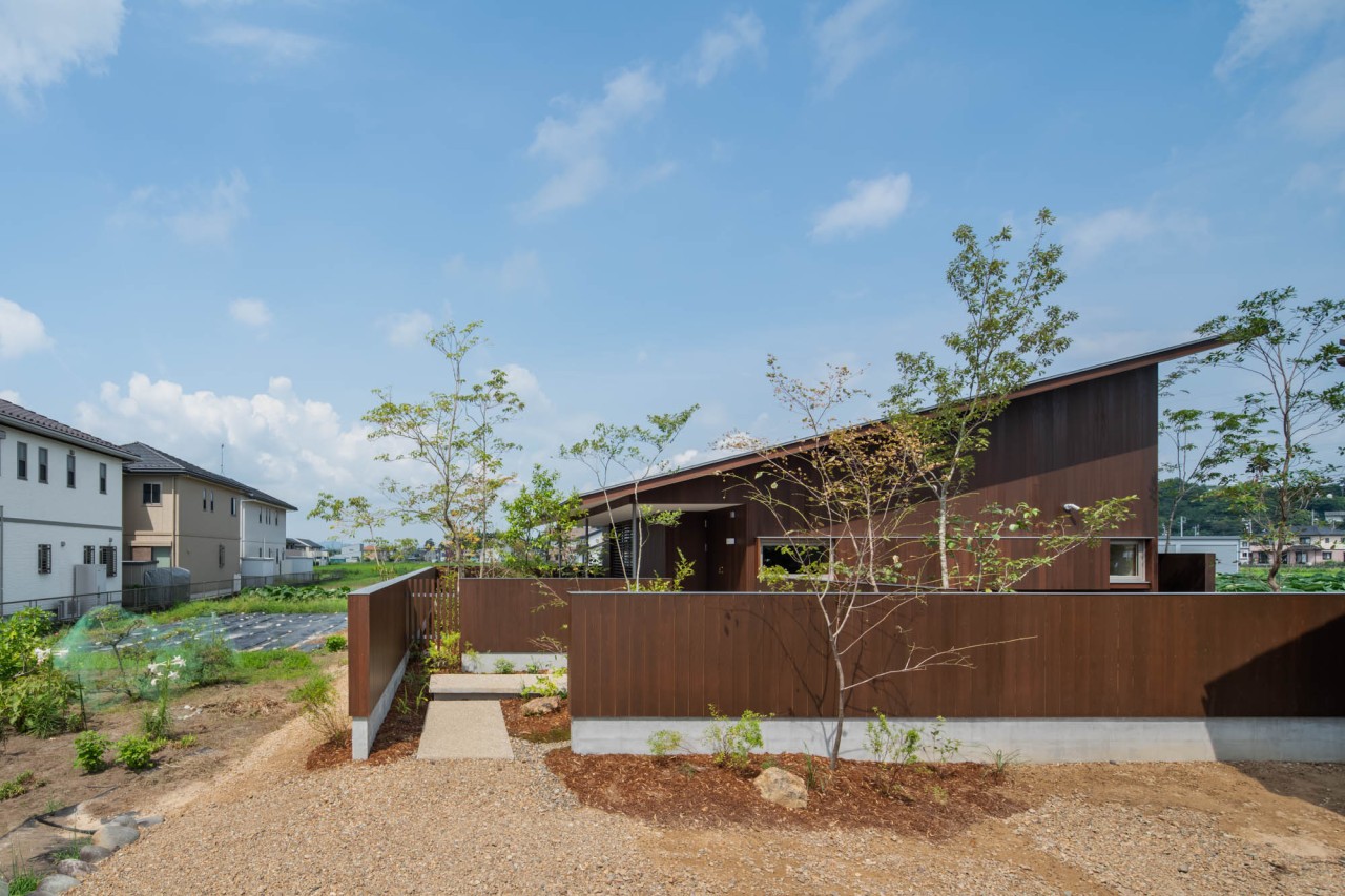 田畑に囲まれ長閑な風景が広がる地域。農地転用の期間を経て、ご実家の隣に5人家族の住まいを建築させていただきました。